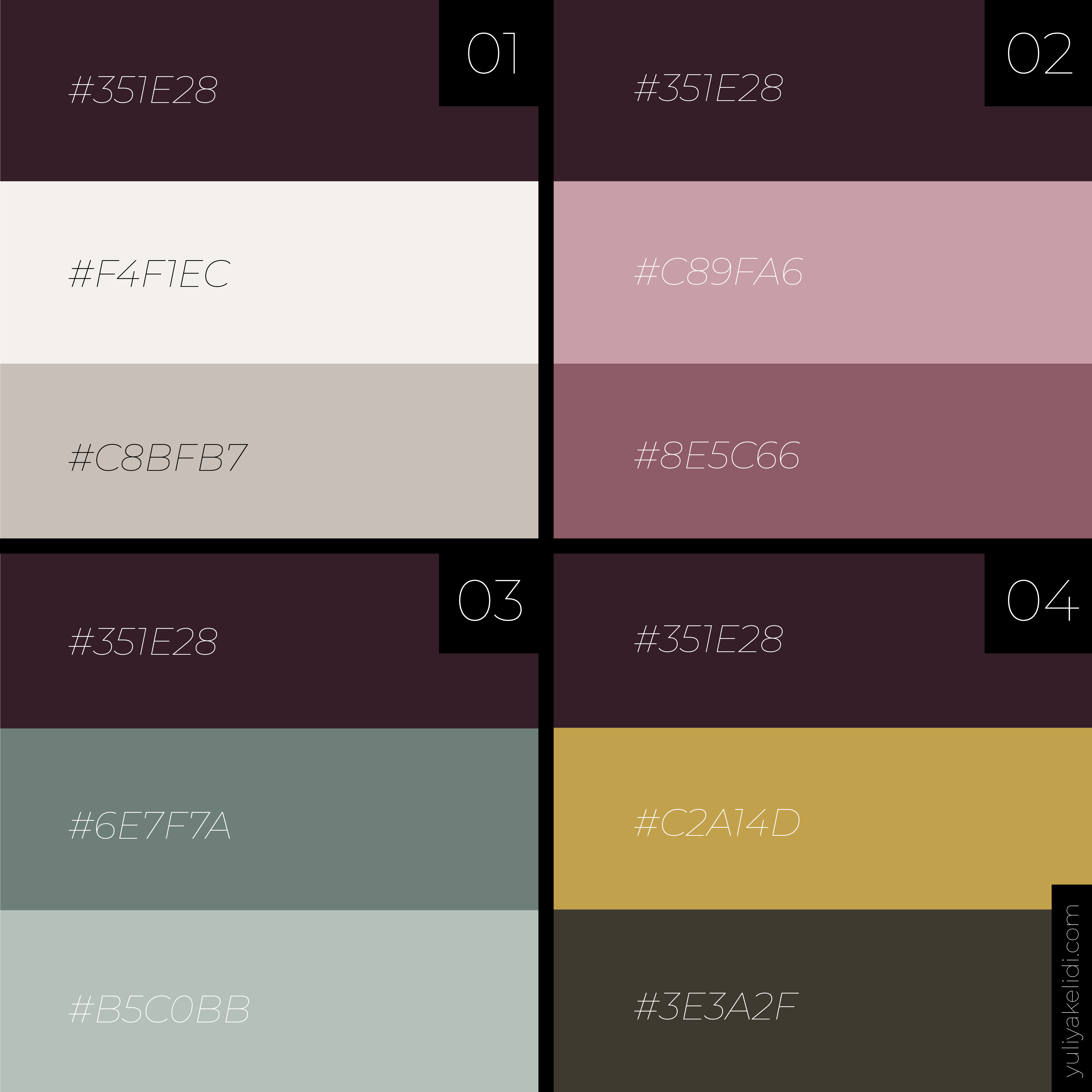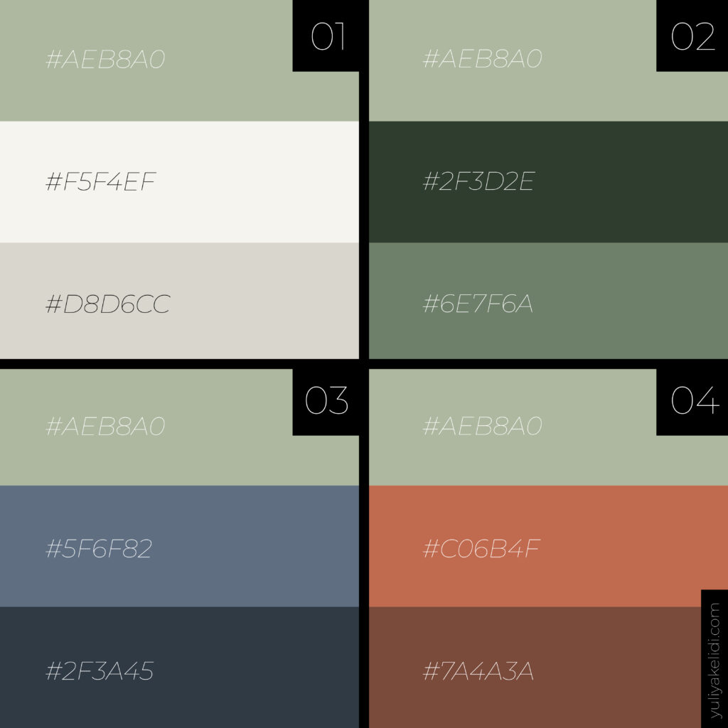 Далее подбираю по 4 варианта к каждому трендовому цвету