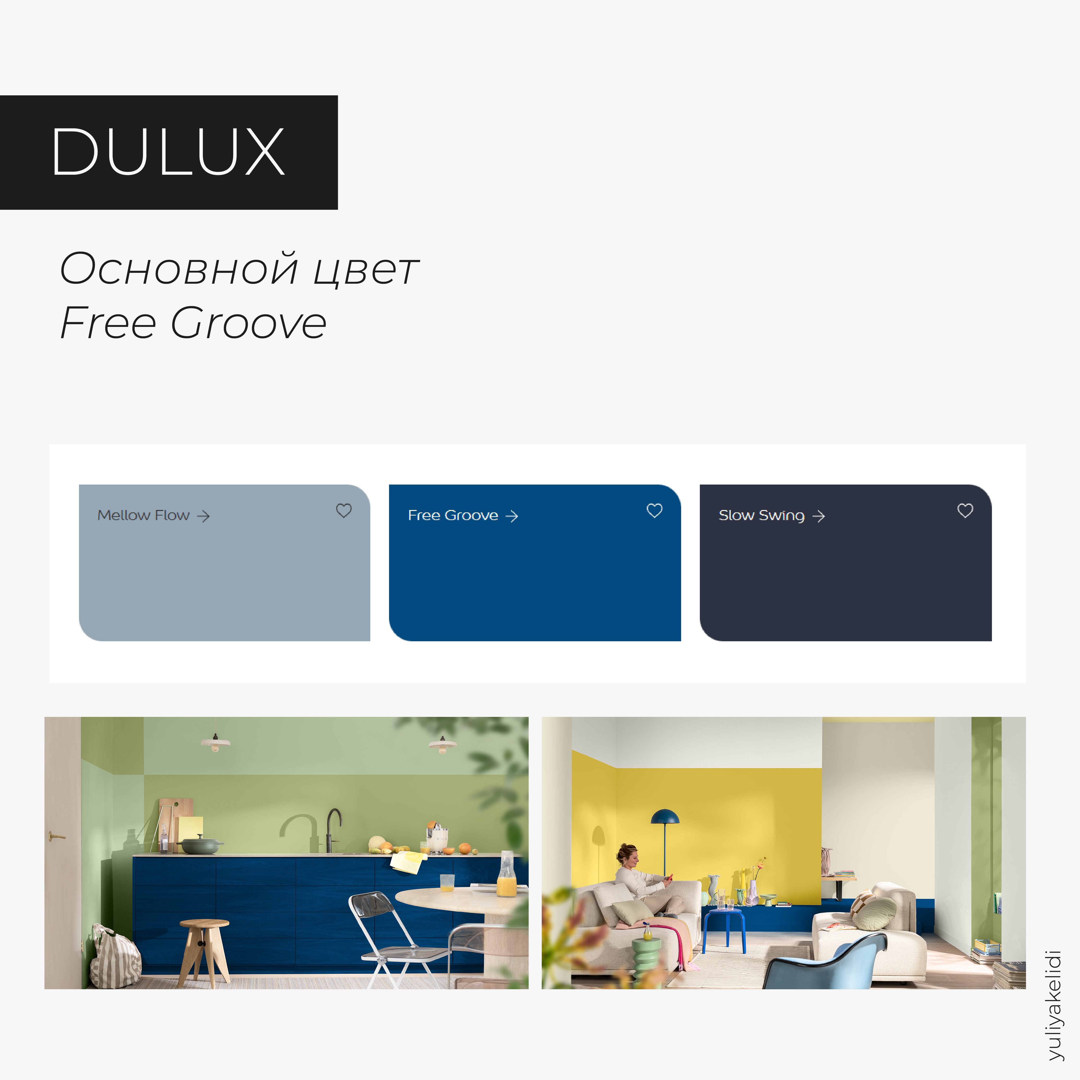 Компания DULUX объявила цветом года очень яркий цвет для интерьера. Он акцентный и не годится для больших поверхностей. Это цвет Free Groove.